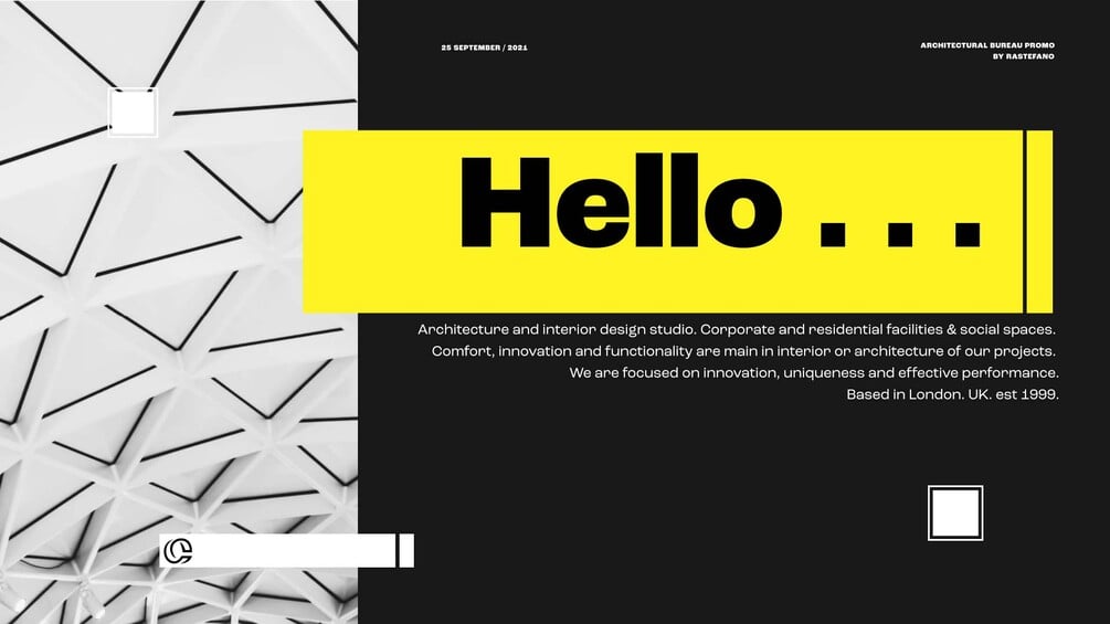 Create your unique presentation video for a real estate agency, architectural or design bureau. This template can also be used for any promotional videos of creative agencies and design studios. If you need to quickly present a project or provide a progress report, these 3 quick openers are what you need. All you need to upload photos and logos, write the text information for it, change the colors on your own or corporate. Everything else is ready to go.